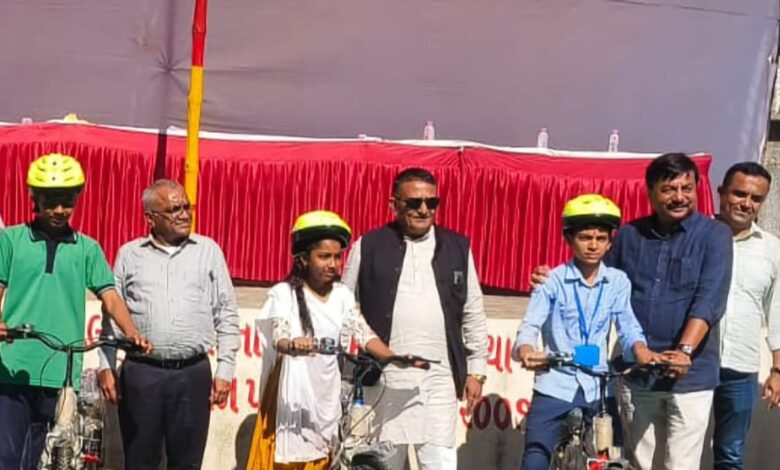 મોટા ફોફળિયામાં 124 વિદ્યાર્થીઓને અધ્યતન સાયકલ-હેલ્મેટનું વિતરણ, બાળકો આનંદવિભોર