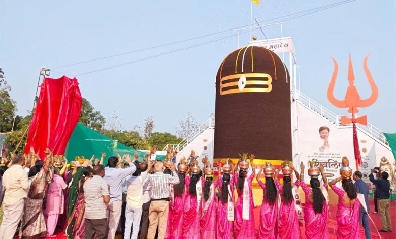 વલસાડથી ધરમપુર રોડ ઉપર આવેલા વાંકલ નજીક દુલસાડ ગામમાં આજે બપોરે શનિવારની બપોરે રુદ્રાક્ષ વિશેષજ્ઞ અને વિશ્વવિખ્યાત શિવ કથાકાર પૂજ્ય બટુકભાઈ વ્યાસના સંકલ્પ અને સાનિધ્યમાં આયોજિત “મહાશિવરાત્રિ મહોત્સવ 2026” અંતર્ગત 31 લાખ રુદ્રાક્ષથી તૈયાર થતું 31 ફૂટ ઊંચું વિરાટ રુદ્રાક્ષ શિવલિંગનું અનાવરણ અનેક કુમારી બાળાઓના વરદ હસ્તે સંતો, મહંતો અને મહાનુભાવોની હાજરીમાં થયું હતું જયારે સમગ્ર વાતાવરણઆધ્યાત્મિક રંગે રંગાય શિવમય બન્યું હતું