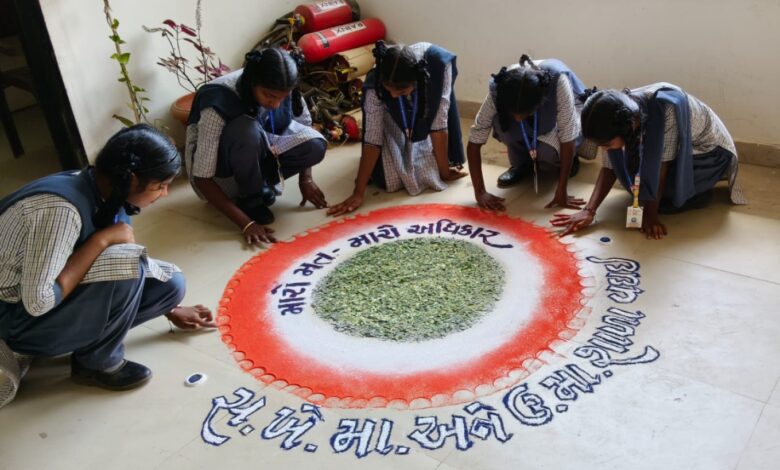 વઘઈમાં સ્વીપ અંતર્ગત મતદાન જાગૃતિ માટે રંગોળી સ્પર્ધા યોજાઈ