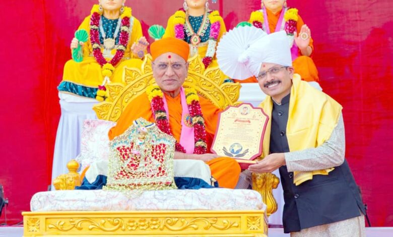 શ્રી સ્વામિનારાયણ ગાદી સંસ્થાનના આચાર્ય શ્રી જિતેન્દ્રિયપ્રિયદાસજી સ્વામીજી મહારાજના વરદ હસ્તે રાજેશકુમાર ધામેલિયાનું સન્માન