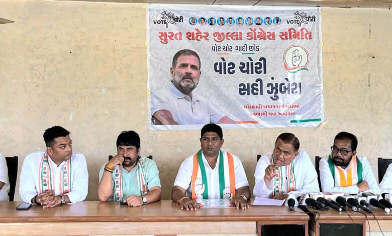 લોકશાહી બચાવવાના સંવૈધાનિક અધિકાર અંતર્ગત વોટ ચોરીના મુદ્દાને દેશભરમાં લઈ જવાના અભિયાનનો કોંગ્રેસ દ્વારા પ્રારંભ કરવામાં આવ્યો છે. જેમાં સુરત શહેર કોંગ્રેસ સમિતિએ પત્રકાર પરિષદ યોજીને ભવિષ્યની યોજનાઓનો રોડમેપ રજુ કર્યો હતો.