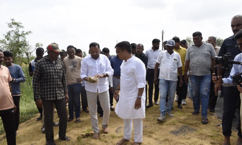 ઓલપાડ તાલુકાના સેલુત અને ભાંડુત ગામે કમોસમી વરસાદથી ખેતરમાં પાકને થયેલા નુકસાનીનો તાગ મેળવતા નાયબ મુખ્યમંત્રી હર્ષ સંઘવી