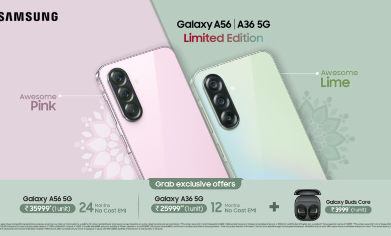 સેમસંગ દ્વારા ગેલેક્સી A56 5G અને ગેલેક્સી A36 5G નવા રંગમાં રજૂઃ ગેલેક્સી A સિરીઝમાં ફેસ્ટિવ ઓફર્સ જાહેર