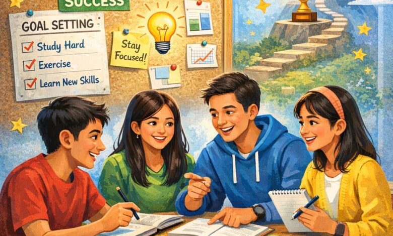 લખેલા Goal ધરાવતા વિદ્યાર્થીઓ
