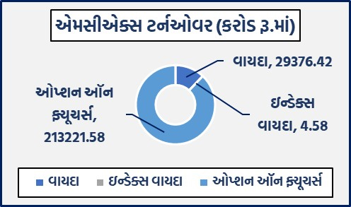 કોમોડિટી વાયદાઓમાં રૂ.29376.42 કરોડ અને કોમોડિટી ઓપ્શન્સમાં રૂ.213221.58 કરોડનું ટર્નઓવરઃ સોના-ચાંદીના વાયદાઓમાં રૂ. 23025.62 કરોડનાં કામકાજઃ બુલિયન ઇન્ડેક્સ બુલડેક્સ વાયદો 40130 પોઇન્ટના સ્તરે