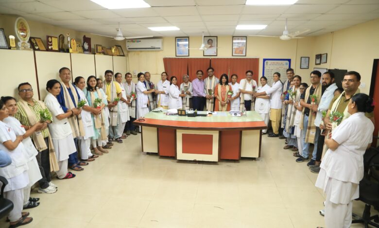 વિવિધ તબીબી વિભાગોના વડાઓનું પુષ્પગુચ્છ અને શાલ અર્પણ કરી સન્માન કરાયું