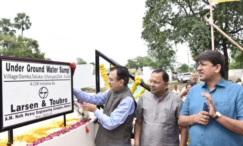 ચોર્યાસી તાલુકાના મોરા, દામકા અને વાંસવા ગામે L&Tના CSR ફંડમાંથી નવનિર્મિત પાણીની ભૂગર્ભ ટાંકીનું લોકાર્પણ કરતા વન,પર્યાવરણ રાજ્યમંત્રી મુકેશભાઈ પટેલ